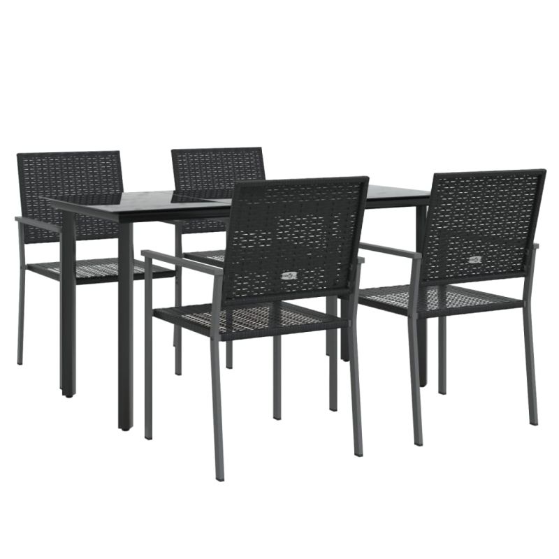 Този градински трапезен комплект, съчетаваща както стил, така и функционалност, без съмнение е предназначен да бъде акцентът на вашата градина, вътрешен двор или всяко друго жилищно пространство. Материал, устойчив на атмосферни влияния: PE ратан, известен също като полиратан, е устойчив на атмосферни влияния и лесен за почистване. Той остава красив отвън за дълъг период от време. Предлага отлично качество, удобство и естетичен вид.Здрава и стабилна рамка: Стоманените рамки правят трапезния комплект здрав и стабилен за ежедневна употреба на открито.Практичен плот: Гладкият плот на трапезната маса е изработен от закалено стъкло, което се почиства лесно с влажна кърпа. Освен това предлага отлична опора за съхранение на вашите ястия, напитки и други декоративни елементи.Удобни места за сядане: Столът за хранене е проектиран с облегалка, за да ви предложи удобно изживяване при сядане. Забележка:За да сте сигурни, че вашите външни мебели ще останат красиви, ви препоръчваме да ги защитите с водоустойчиво покривало. Максимално 110 кг на седалка.