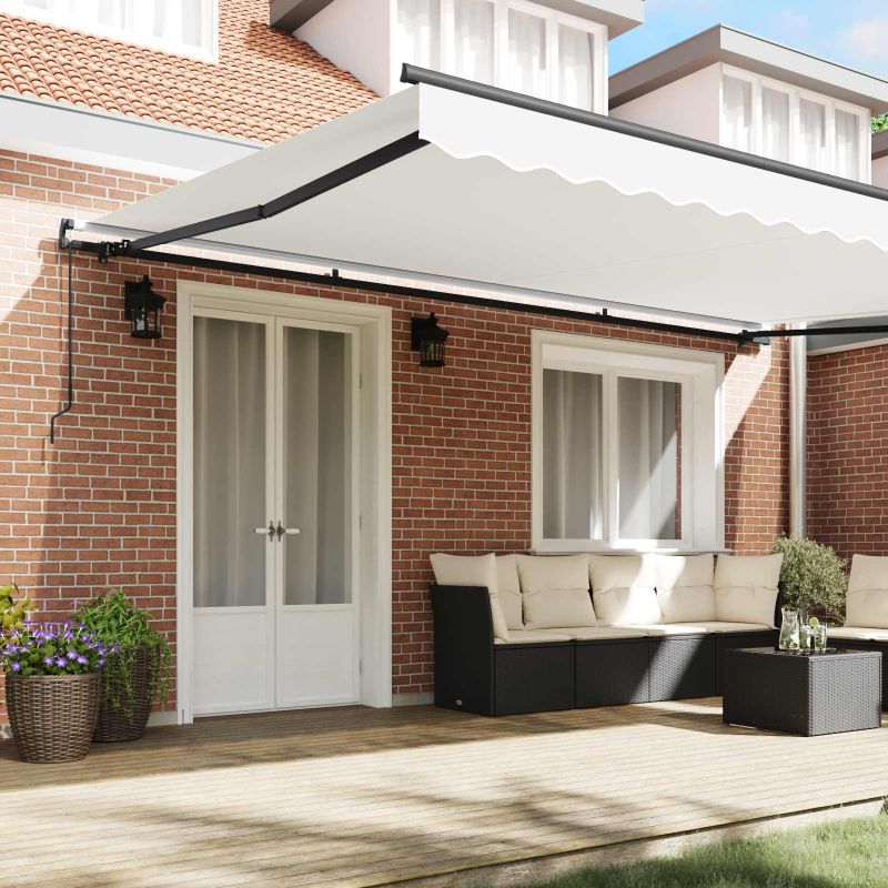 Този модерен прибираем сенник добавя стил и функция на всяка градина или тераса. С дизайна си, който комбинира простота и модерна естетика, той е страхотно допълнение към откритото пространство. Предназначен за външна употреба, той предлага много сянка, което увеличава комфорта особено през лятото. Подходящ за гъвкаво използване, този сенник е за онези, които обичат комбинацията от комфорт и стил в градината или на терасата. Модерен дизайн: Съчетава изтънченост с функционалност, нашият прибираем сенник носи модерен стил и простота, която му позволява да се впише в различни архитектурни стилове, безшевно интегрирайки се с околната среда. Здрави материали: Направен от качествен полиестер и здрава стомана, този сенник предлага добра устойчивост на времето и осигурява UV, водо- и избледняваща защита за продължителна употреба. Ръчно регулиране: Лесният механизъм за ръчно регулиране на сенника позволява на потребителите лесно да разширяват или свиват сянката, нагласявайки покритието според предпочитанията си. Решение за слънце: Идеален за лятно време, този сенник прави откритите занимания по-приятни, предлагайки надеждна защита от слънцето. Лесна поддръжка: Проектиран с идеята за простота, поддръжката включва основно почистване с мек сапун и вода, а здравите материали изискват минимални грижи, за да остане визуално привлекателен. Опасност! Силен отскок при отваряне. НЕ сваляйте това въже, освен ако не сте приключили с всички стъпки на сглобяване. Всички болтове трябва да са затегнати и елементът да е прикрепен към стената! Предупреждение! Внимавайте, когато разхлабвате рамената, защото те са под напрежение! Внезапното освобождаване на рамо на сгъваема тента може да причини нараняване. Внимание: Инструкциите за ползване трябва да бъдат прочетени преди употребата на продукта. Предупреждение: Работата в студени условия може да повреди продукта. Външна употреба в сгради и други строителни обекти.