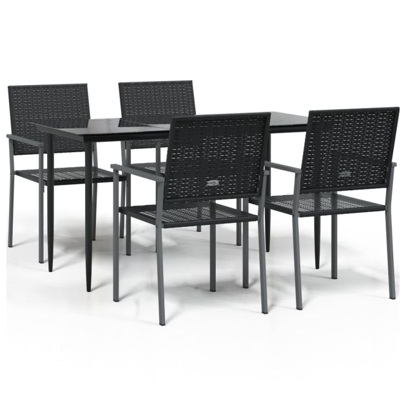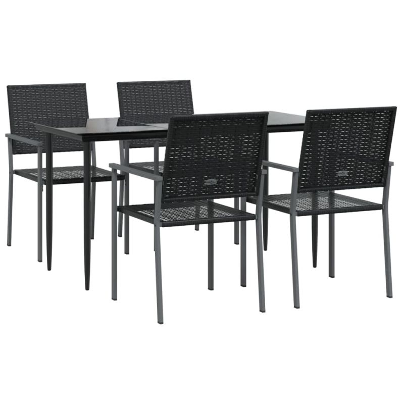 Този градински трапезен комплект, съчетаваща както стил, така и функционалност, без съмнение е предназначен да бъде акцентът на вашата градина, вътрешен двор или всяко друго жилищно пространство. Материал, устойчив на атмосферни влияния: PE ратан, известен също като полиратан, е устойчив на атмосферни влияния и лесен за почистване. Той остава красив отвън за дълъг период от време. Предлага отлично качество, удобство и естетичен вид.Здрава и стабилна рамка: Стоманените рамки правят трапезния комплект здрав и стабилен за ежедневна употреба на открито.Практичен плот: Гладкият плот на трапезната маса е изработен от закалено стъкло, което се почиства лесно с влажна кърпа. Освен това предлага отлична опора за съхранение на вашите ястия, напитки и други декоративни елементи.Удобни места за сядане: Столът за хранене е проектиран с облегалка, за да ви предложи удобно изживяване при сядане. Забележка:За да сте сигурни, че вашите външни мебели ще останат красиви, ви препоръчваме да ги защитите с водоустойчиво покривало. Максимално 110 кг на седалка.