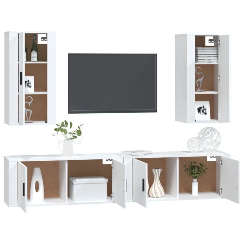 Комплект ТВ шкафове от 4 части, инженерно дърво, бял гланц