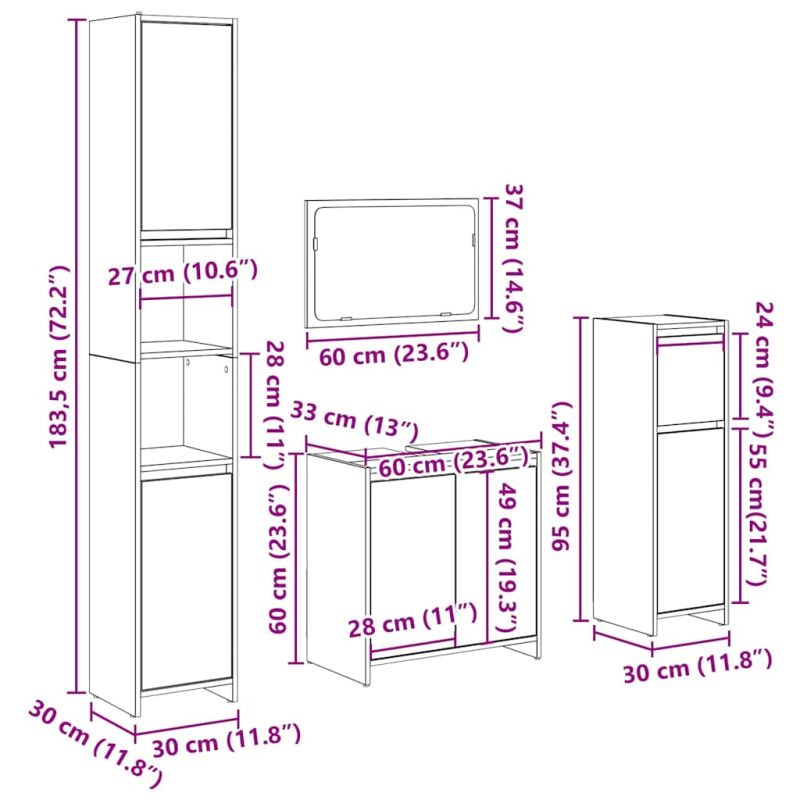 Този стилен комплект мебели за баня е отлично допълнение към вашата баня, придавайки ѝ подредена и впечатляваща визия! Стабилен и издръжлив материал: Инженерната дървесина е издръжлив и стабилен материал с гладка повърхност, която е устойчива на влага, изкривяване и разцепване, което я прави надежден избор за различни проекти.Практичен плот на шкафа: Горната част на шкафа за мивка е снабден с дупка, така че е идеален за поставяне на мивката.Достатъчно място за съхранение: Тоба обзавеждане за баня предлага достатъчно място за съхранение, където да държите вашите принадлежности добре организирани и подръка.Практична врата: Вратата на шкафа за съхранение осигурява затворено пространство за съхранение, за да бъдат вещите ви подредени, защитени и да не се виждат.Лесна за поддръжка: Благодарение на гладката си повърхност, шкафът за баня се почиства лесно с влажна кърпа и изисква по-малко поддръжка. Внимание:За да предотвратите преобръщане, този продукт трябва да се използва с предоставеното устройство за закрепване на стена. Добре е да се знае:Винтовете и дюбелите за вътрешната стена не са включени. Съветваме ви да намерите и използвате винтове и дюбели, подходящи специално за вашите стени. Ако не сте сигурни, можете да се консултирате с професионалист. Моля, прочетете и следвайте всяка стъпка от инструкциите.