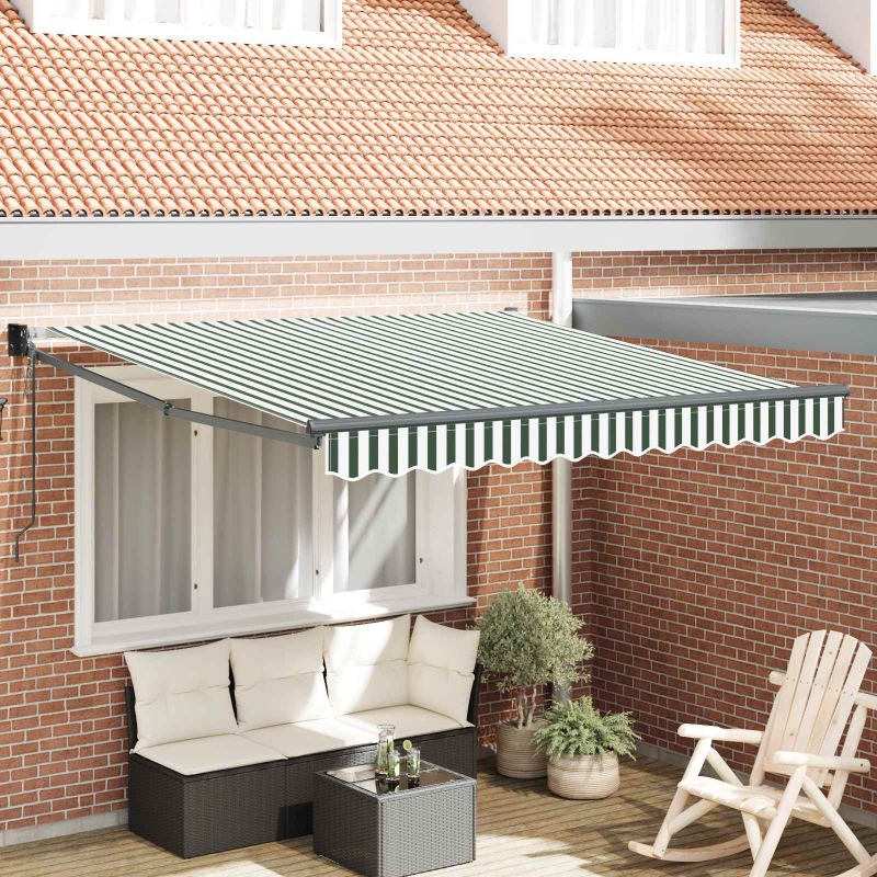 Начало Дом и градина Двор и градина Живот на открито Навеси за врати и прозорци Сгъваем навес Зелен и бял 350 x 250 cm Полиестер и алуминий