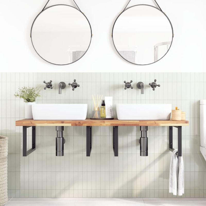 Обновете банята си с този дървен плот за баня за нотка рустик чар! Здрав и стабилен материал на рамката: Масивното акациево дърво е известно със своята здравина и издръжливост. Неговите разнообразни цветове и уникални зърнести шарки му придават привлекателен вид. С отлична стабилност и устойчивост на атмосферни влияния, той е идеален за изработка на вътрешни и външни мебели.Необработена повърхност: Този плот е изработен от необработено акациево дърво и можете да запазите естествения му цвят или да го персонализирате с боя или лак според предпочитанията си.Гъвкава употреба: Този многофункционален плот може да се комбинира с различни основи за различни приложения, като кухненски работен плот, работна маса в гараж, рафт за баня или плот за бюро.Лесна поддръжка: Благодарение на гладката си повърхност, работният плот се почиства лесно с влажна кърпа и изисква по-малко поддръжка. Добре е да се знае:Всеки артикул е уникален с вариации в цветове и зърна. Доставката е на случаен принцип, което гарантира ексклузивността и индивидуалността на вашия продукт.