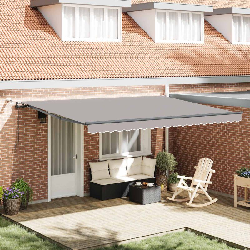 Тази тъкан за външни сенници е направена, за да е стилна и практична сянка за много външни места. Правоъгълната форма е идеална за балкони, градини и тераси, а модерният дизайн с чисти линии я прави атрактивна. Чистата тъкан поканва потребителите да си направят уютен и сенчест кът, който е не само красив, но и полезен. Тя лесно се съчетава с градски или неофициални домашни обстановки, което ви позволява да се наслаждавате на времето навън, без значение колко е горещо. Материали: Направен от полиестер, този сенник е UV защитен и водоотблъскващ, което осигурява надеждност срещу слънчевите лъчи и устойчивост на различни метеорологични условия. Изборът на материал предлага както полезност, така и хубав вид, създавайки приятна открита атмосфера. Включени компоненти: В пакета ще намерите здрава тъкан за сенник, подкрепяна от стабилна рамка, плюс дистанционно управление за лесна работа. Компонентите са проектирани да работят добре заедно, осигурявайки удобно изживяване от монтиране до ежедневна употреба. Характеристики / функция / дизайн: Прибираемият дизайн позволява сенникът да се разширява и прибира лесно, предлагайки различни опции за сянка. Проектирането акцентира на простотата и практичността, по модерен начин, което дава възможност за настройки според нуждите на деня. Препоръчителни употреби: Идеален за открито, този сенник ще разнообрази вашите слънчеви терени, балкони и градини, увеличавайки комфорта през лятото. Чудесен е за всеки, който иска да направи ян уникален кът на открито или да организира обеди без да жертва стил. Грижа и поддръжка: За най-добро представяне, третирайте тъканта с водоотблъскващ спрей, за да поддържате свойствата му. Редовното почистване с неабразивни материали гарантира, че винаги изглежда добре и остава функционален. Опасност! Силен отскок при отваряне. НЕ сваляйте това въже, освен ако не сте приключили с всички стъпки на сглобяване. Всички болтове трябва да са затегнати и елементът да е прикрепен към стената! Предупреждение! Внимавайте, когато разхлабвате рамената, защото те са под напрежение! Внезапното освобождаване на рамо на сгъваема тента може да причини нараняване. Внимание: Инструкциите за ползване трябва да бъдат прочетени преди употребата на продукта. Предупреждение: Работата в студени условия може да повреди продукта. Външна употреба в сгради и други строителни обекти. Не позволявайте на деца да си играят с управляващото устройство на щората. Дръжте дистанционното управление далеч от деца.