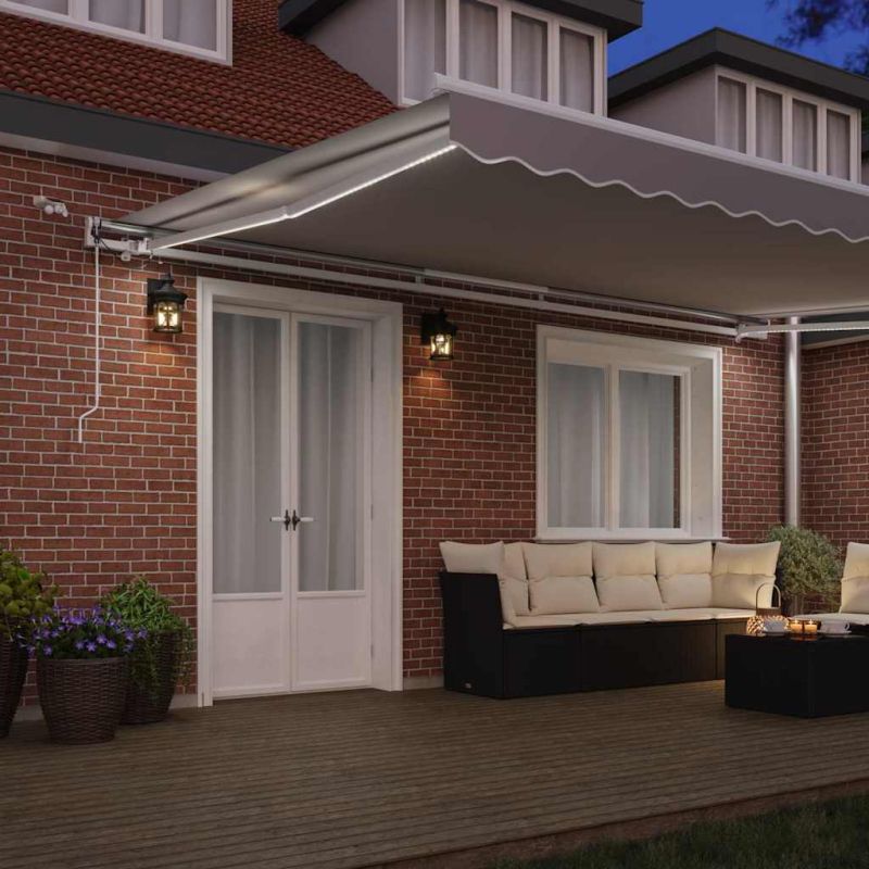 Този автоматичен прибираем сенник дава и практическа, и стилна стойност на всяко открито пространство. С чистите си линии и функционален дизайн, той е модерен и идеално подобрява патии или балкони, осигурявайки ефективна защита от слънцето. Гладката му текстура и минималистичен дизайн създават приятно място за отдих за семейства и приятели. Материали: Изработен от полиестер и метал, този сенник съчетава устойчива тъкан с надеждна алуминиева рамка, осигурявайки стабилност независимо от времето. Тази комбинация не само добавя стил, но и предлага ефективна защита от UV лъчи, запазвайки качествата си във времето. Включени компоненти: С LED лентите, този сенник не просто осигурява сянка, но и осветление. Интегрираните LED ленти предлагат много опции за осветление, подобрявайки вечерните събирания и настроението на патията. Функции /Функция /Дизайн: Прибираемият механизъм позволява на потребителите да регулират сянката с лекота. Тази комбинация от функционалност и здравина е пример за съвременен живот на открито, който се вписва идеално в различни стилове. Препоръчителни употреби: Този сенник е универсален и идеален за градини, дворове или търговски тераси, предлагащ чудесно решение за личен отдих или обществени събития. Неговата гъвкавост го прави подходящ за всякакви пространства. Грижа и поддръжка: За да запазите привлекателността на сенника, редовно почиствайте полиестерната тъкан с нежна кърпа и избягвайте агресивни химикали. Проверките на механизма ще осигурят безпроблемно функциониране, за да остане красив и полезен.