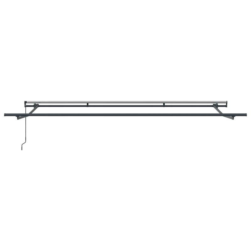 Този модерен прибираем сенник добавя стил и функция на всяка градина или тераса. С дизайна си, който комбинира простота и модерна естетика, той е страхотно допълнение към откритото пространство. Предназначен за външна употреба, той предлага много сянка, което увеличава комфорта особено през лятото. Подходящ за гъвкаво използване, този сенник е за онези, които обичат комбинацията от комфорт и стил в градината или на терасата. Модерен дизайн: Съчетава изтънченост с функционалност, нашият прибираем сенник носи модерен стил и простота, която му позволява да се впише в различни архитектурни стилове, безшевно интегрирайки се с околната среда. Здрави материали: Направен от качествен полиестер и здрава стомана, този сенник предлага добра устойчивост на времето и осигурява UV, водо- и избледняваща защита за продължителна употреба. Ръчно регулиране: Лесният механизъм за ръчно регулиране на сенника позволява на потребителите лесно да разширяват или свиват сянката, нагласявайки покритието според предпочитанията си. Решение за слънце: Идеален за лятно време, този сенник прави откритите занимания по-приятни, предлагайки надеждна защита от слънцето. Лесна поддръжка: Проектиран с идеята за простота, поддръжката включва основно почистване с мек сапун и вода, а здравите материали изискват минимални грижи, за да остане визуално привлекателен. Опасност! Силен отскок при отваряне. НЕ сваляйте това въже, освен ако не сте приключили с всички стъпки на сглобяване. Всички болтове трябва да са затегнати и елементът да е прикрепен към стената! Предупреждение! Внимавайте, когато разхлабвате рамената, защото те са под напрежение! Внезапното освобождаване на рамо на сгъваема тента може да причини нараняване. Внимание: Инструкциите за ползване трябва да бъдат прочетени преди употребата на продукта. Предупреждение: Работата в студени условия може да повреди продукта. Външна употреба в сгради и други строителни обекти.