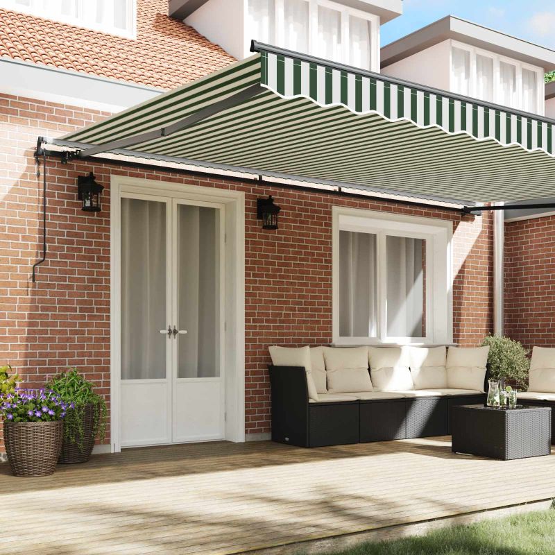 Начало Дом и градина Двор и градина Живот на открито Навеси за врати и прозорци Сгъваем навес Зелен и бял 500 × 350 cm Тъкан и алуминий