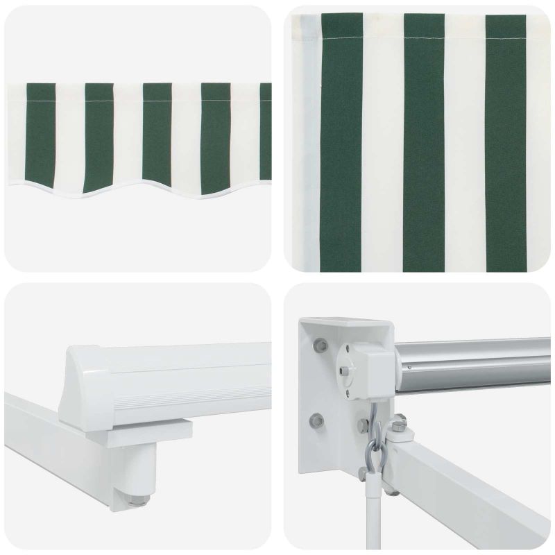 Начало Дом и градина Двор и градина Живот на открито Навеси за врати и прозорци Ръчен изтеглящ сенник с LED светлини Зелен и бял 4,5 × 3 m
