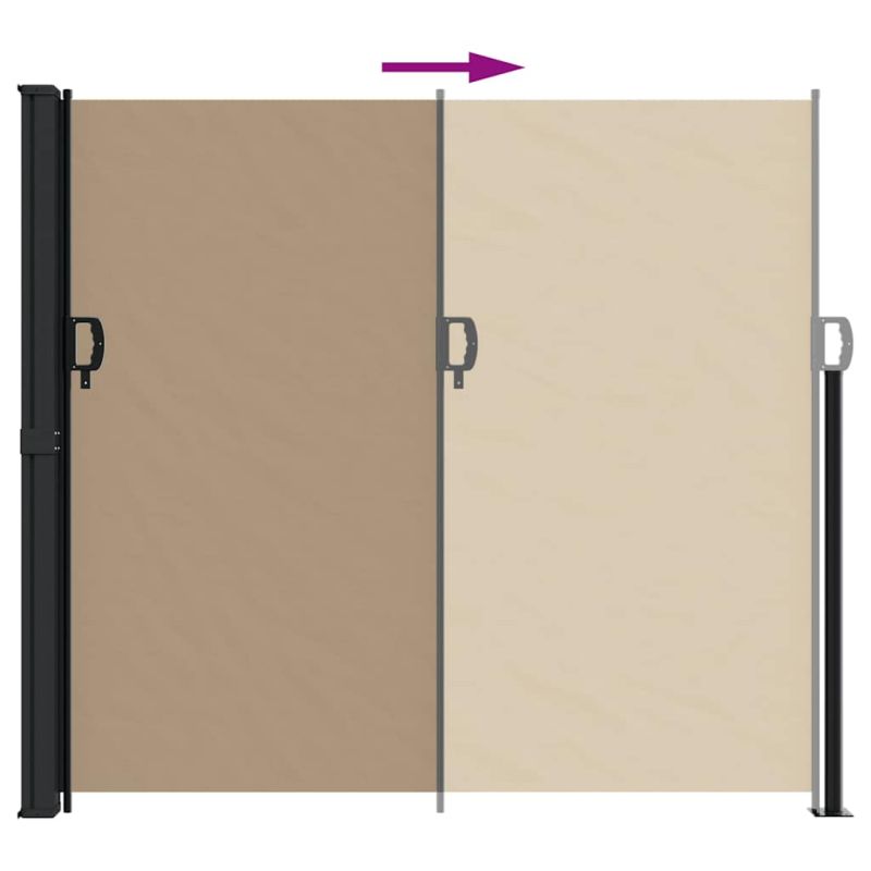 Създайте незабавен и личен оазис на вашия балкон, тераса или вътрешен двор с помощта на тази прибираща се странична тента! Устойчив на вода и UV лъчи: Този параван за уединение в градината е изработен от 100% полиестер с полиуретаново (PU) покритие, осигуряващо добра дишаемост и отлична защита срещу вятър, слънце, вода и UV светлина.Удобен дизайн: Благодарение на прибиращия се дизайн, градинският параван автоматично се навива назад, когато махнете дръжката от стълба.Лесен монтаж: Двата стълба могат лесно да бъдат фиксирани към стената и земята за допълнителна стабилност и безопасност с помощта на включените аксесоари за монтаж.Широки приложения: Тази универсална странична тента може да се използва в различни настройки, както на открито като заден двор, тераса, градина, веранда, балкон, така и на закрито като офис, клиника, студио, съблекалня, за създаване на допълнително пространство на стената според нуждите.