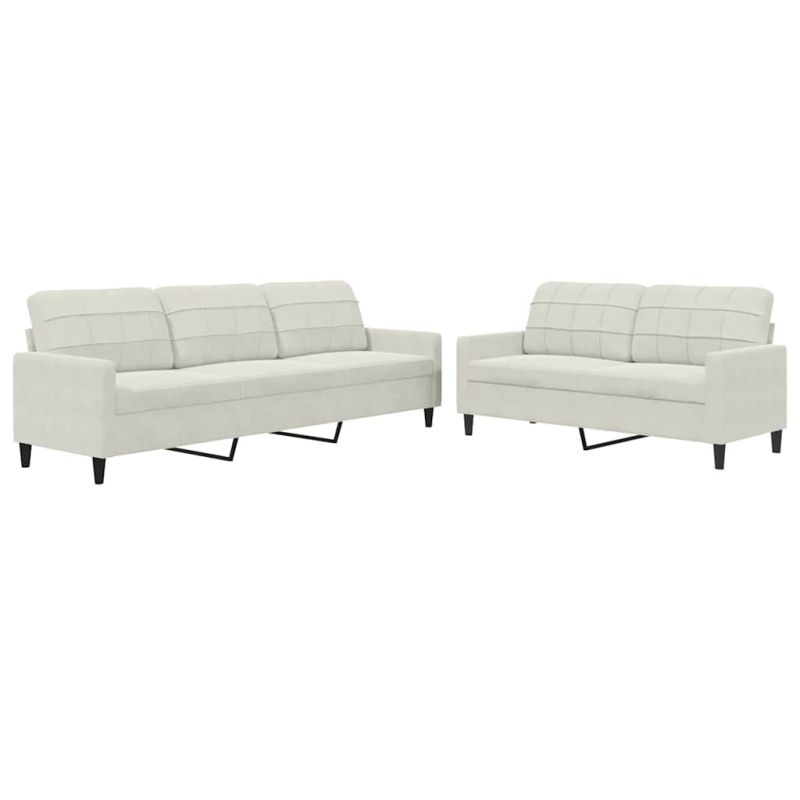 Комплект дивани от 2 части с възглавници, кремав, кадифе