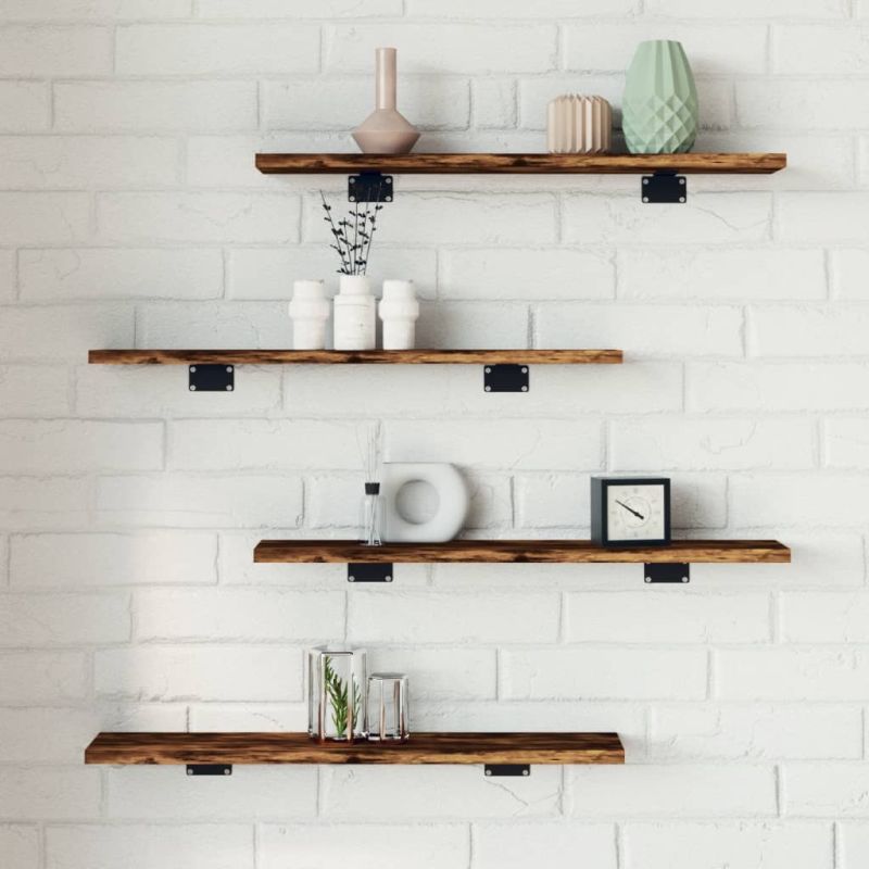 Стенни рафтове 4 бр опушен дъб 60x10x1,5 см инженерно дърво