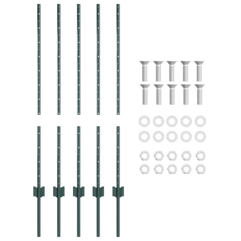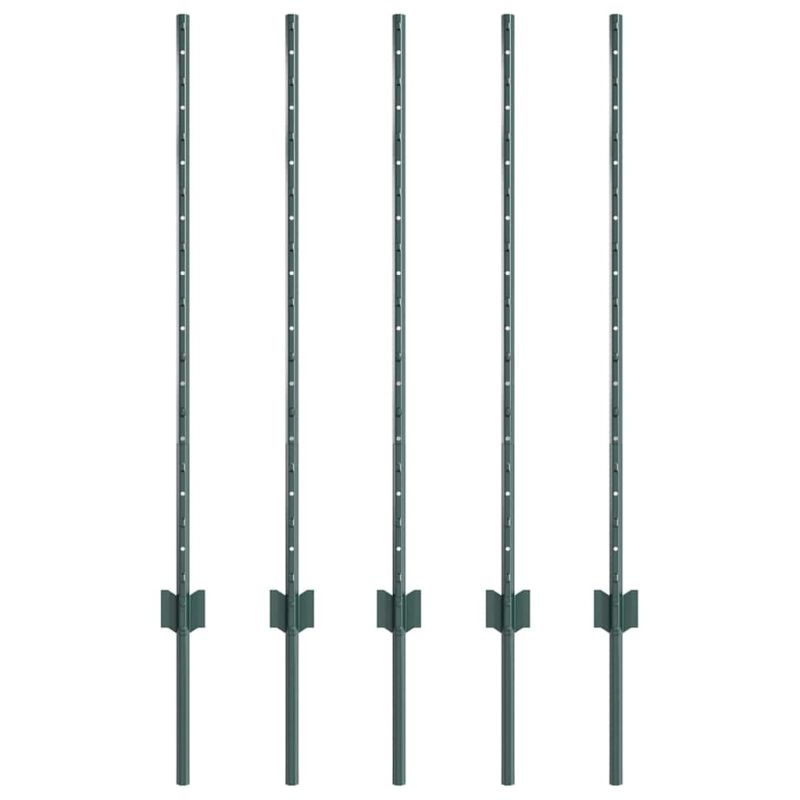 Стълб за ограда. 5 pcs Зелен 140 cm Стомана