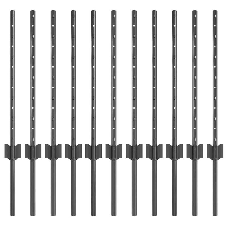 Стълб за ограда. 11 pcs Сив 60 cm Стомана