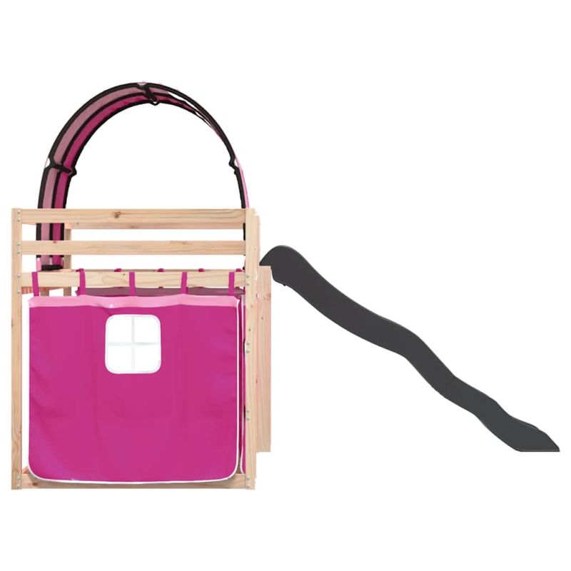 Това дървено двуетажно легло е елегантно и функционално, което го прави идеално допълнение към всяка стая с ограничено пространство. Масивна борова дървесина: Това двуетажно легло е изработено от масивна борова дървесина за стабилност и издръжливост. Боровата дървесина има прави влакна, а чеповете придават на материала характерния му, рустик вид.Страхотно забавление: Можете да комбинирате завесите с ниското двуетажно легло, за да създадете тайната база на вашето дете, осигурявайки страхотно забавление преди лягане и добавяйки фокусна точка към спалнята!Предпазни парапети: Горното легло е с предпазни парапети от всичките 4 страни, така че детето ви може да спи, без да се притеснява, че ще падне.Удобна стълба и пързалка: Това двойно двуетажно легло има забавна пързалка, която носи радост и превръща стаята им в детска площадка на закрито. Комбинацията от стълба за катерене и пързалка прави времето за лягане по-живо и интересно за децата.Здрави летви: Летвите от шперплат осигуряват добро разпределение на теглото, като гарантират, че матракът ще остане на мястото си при всяко завъртане и обръщане на тялото ви по време на сън. Полезно е да знаете:Матракът не е включен в това легло. Предлагаме разнообразна селекция от матраци. Можете да проверите нашия магазин за подходящ матрак.Тази рамка за легло е с дизайн с летви и включва летви. Предупреждение:За да се предотврати преобръщането, този продукт трябва да се използва с предоставеното устройство за закрепване към стена.