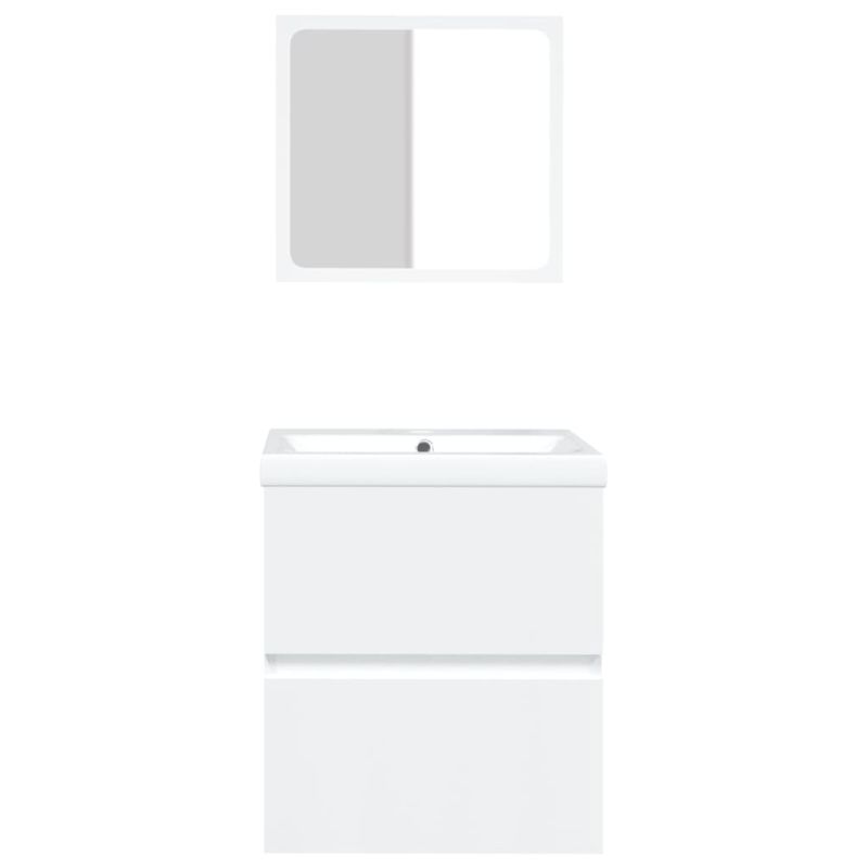 Този шкаф за баня с вградена мивка и огледало, включващ просторно място за съхранение, е шикозно и непреходно допълнение към всяка баня или тоалетна. Здрав материал: Шкафът за под мивка е изработен от инженерна дървесина, която е с изключително качество с гладка повърхност и също така се отличава със здравина, стабилност и устойчивост на влага.Достатъчно място за съхранение: Модулът за мивка за баня разполага с чекмедже, което предлага достатъчно място за съхранение за вещи във вашата баня.Практичен дизайн: Плотът на този шкаф за баня е идеален за поставяне на мивката.Функция за монтиране на стена: Шкафът за баня и огледалото за грим могат да бъдат монтирани на стена, за да осигурят допълнително място за съхранение. По този начин можете да увеличите максимално пространството на пода и да поддържате чистота.Преливник: Също така е оборудвана с преливник за изтичане на вода, когато се напълни твърде много. Забележка:Винт(ове) и щепсел(и) за вътрешността на стената не са включени. Търсете и използвайте винт(ове) и дюбел(и), подходящи за вашите стени. Ако не сте сигурни, потърсете професионална помощ. Прочетете и следвайте внимателно всяка стъпка от инструкциите.Кранът и отводнителната тръба не са включени в доставката.Всеки продукт се доставя с ръководство за сглобяване в кашона за лесно сглобяване. Децата трябва да бъдат наблюдавани, за да се гарантира, че не играят с уреда. Пазете децата далеч от зоната за сглобяване. Внимание: Прочетете внимателно инструкциите преди употреба и ги запазете за по-нататъшни справки.