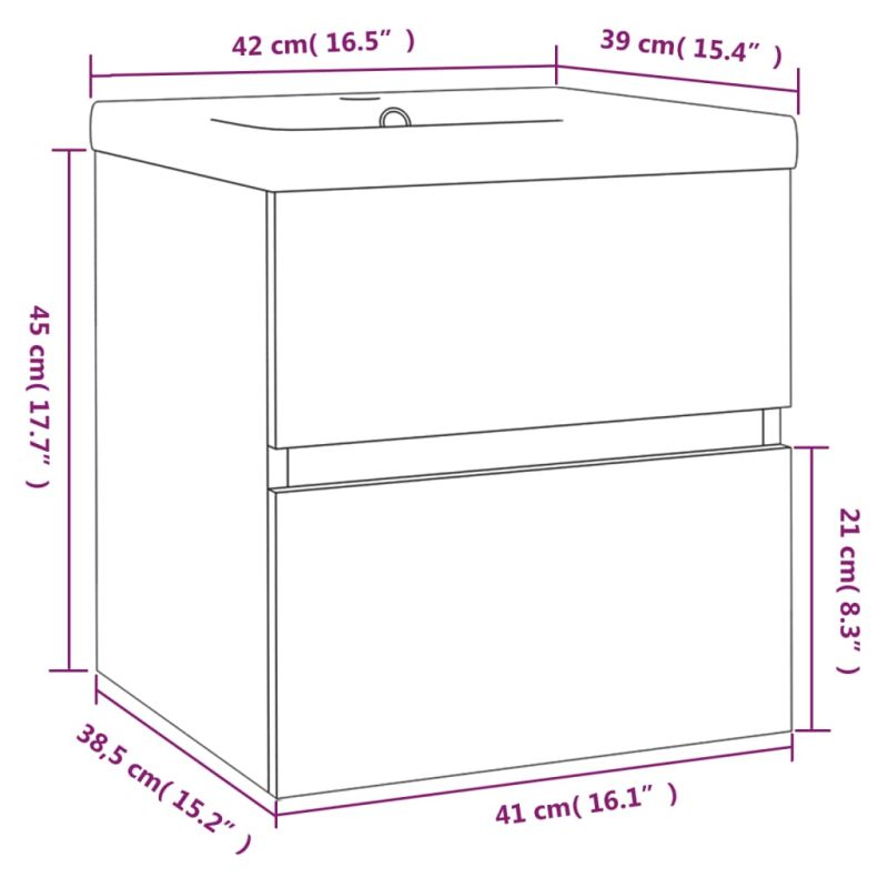Шкаф за мивка с вградена мивка, опушен дъб, инженерно дърво