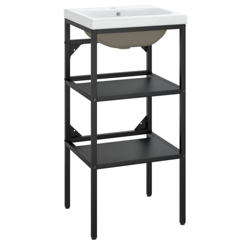 Рамка за мивка за баня с вграден умивалник, черна, желязна