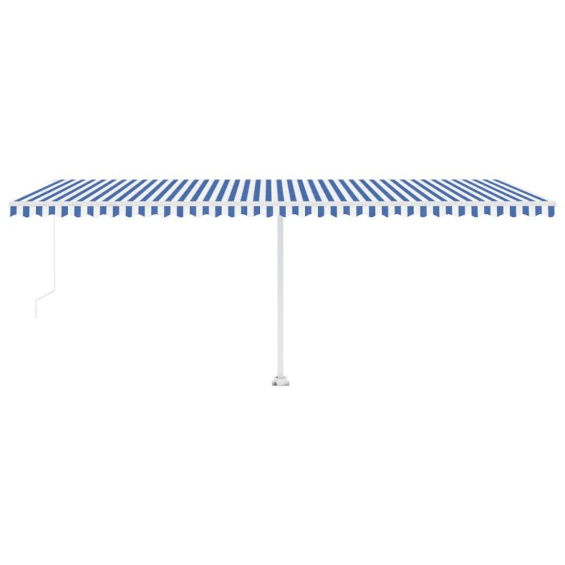Ръчно прибиращ се сенник с LED, 600x300 см, синьо и бяло