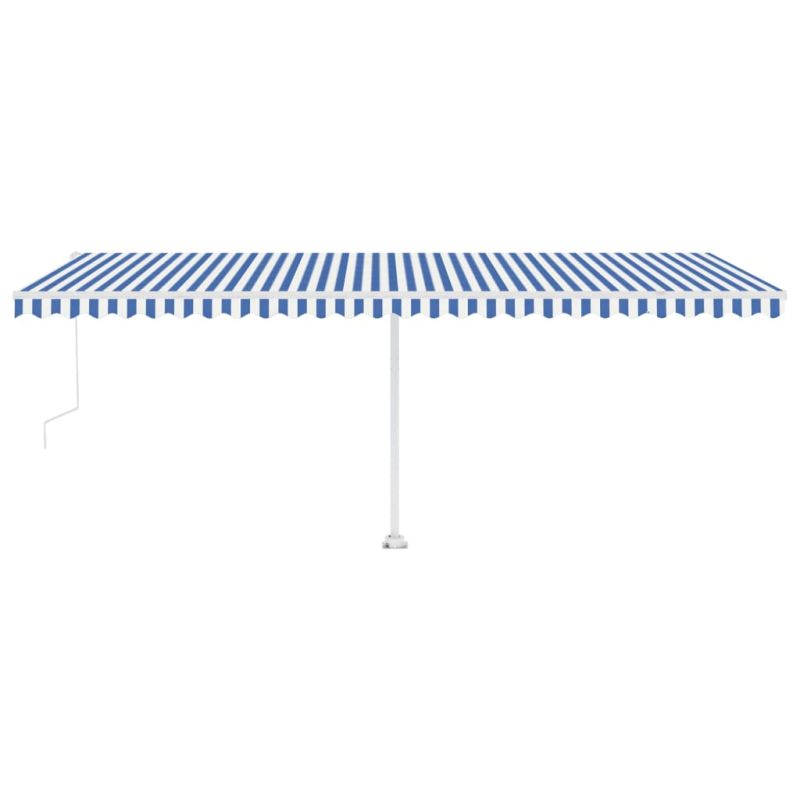 Автоматичен сенник LED сензор за вятър 600x300 см синьо и бяло