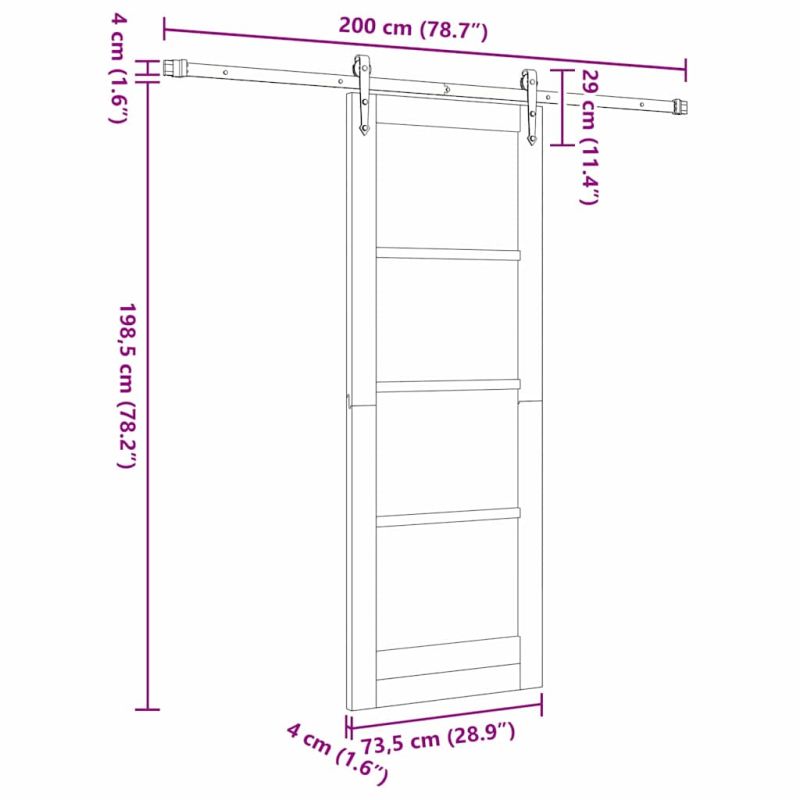 Плъзгаща врата Кафяво 73.5 x 198.5 см Дърво и метал