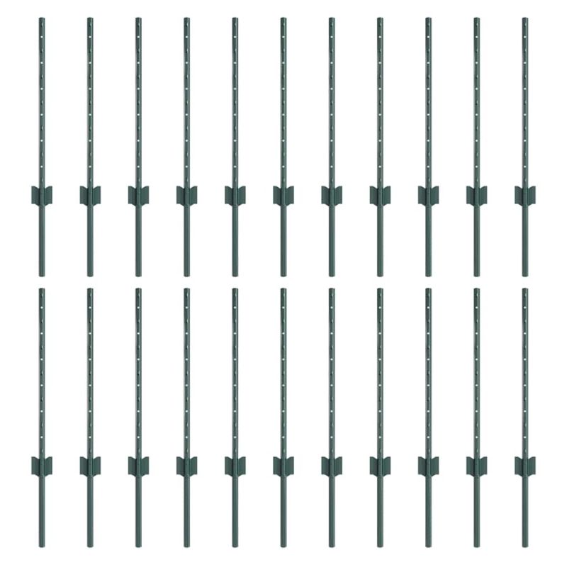 Стълб за ограда. 22 pcs Зелен 100 cm Стомана
