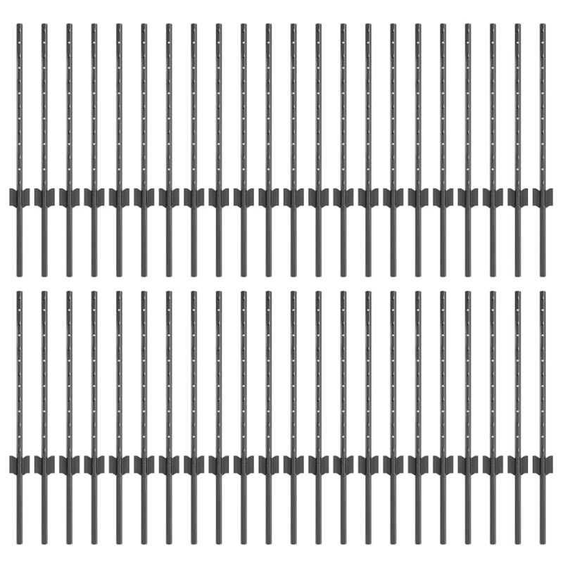 Стълб за ограда. 44 pcs Сив 100 cm Стомана