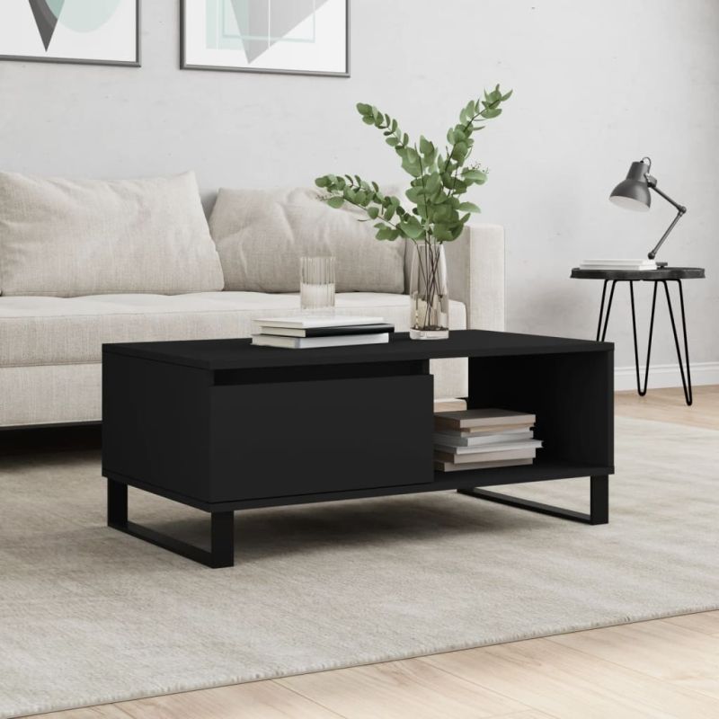 Кафе маса, черна, 90x50x36,5 см, инженерно дърво