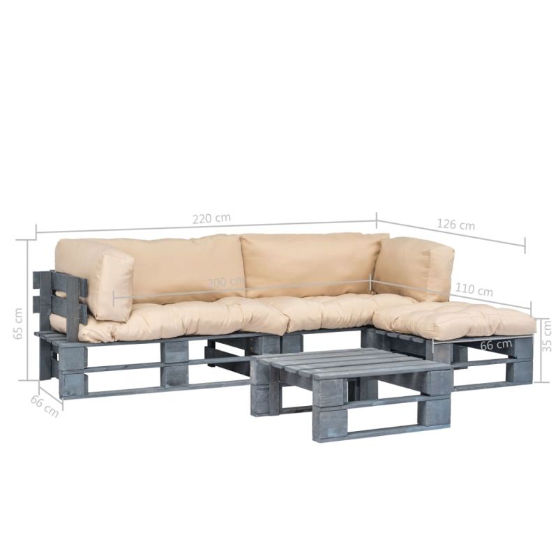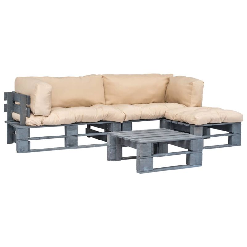 Градински палетен комплект 4 части с пясъчни възглавници дърво