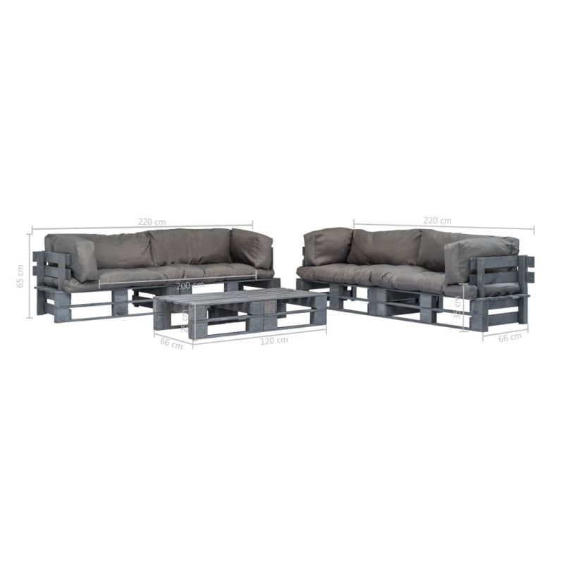 Градински палетен комплект 6 части със сиви възглавници дърво