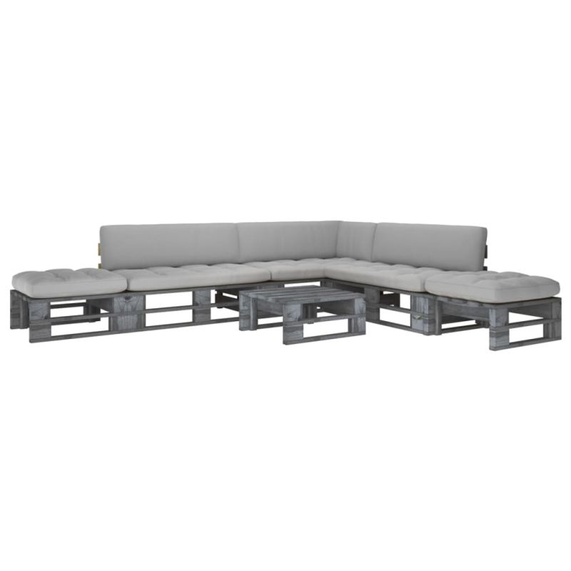 Палетен комплект с възглавници 6 части бор със сива импрегнация