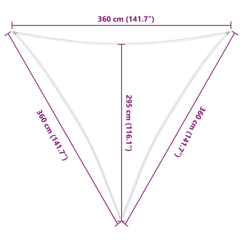 Сенникът за слънце е перфектното решение за горещите летни дни. Тази триъгълна конструкция комбинира стил и практичност, добавяйки страхотен вид на всяка тераса или градина. С неговия минималистичен подход, ще създадете уютна и защитена зона за релакс на открито. Качествени материали: Направен от 100% полиестер, устойчив на влага и дъжд, за максимална издръжливост. Сигурни компоненти: Неръждаеми закопчалки на ъглите за лесно и безопасно закрепване. Иновативен дизайн: Триъгълната форма привнася стил и осигурява добро покритие на различни открити пространства. Множество приложения: Идеален за различни места като градини, балкони и тераси, за да създадете сенчести кътчета. Инструкции за грижа: Лесен за поддръжка, с възможност за почистване с мека четка и студена вода.