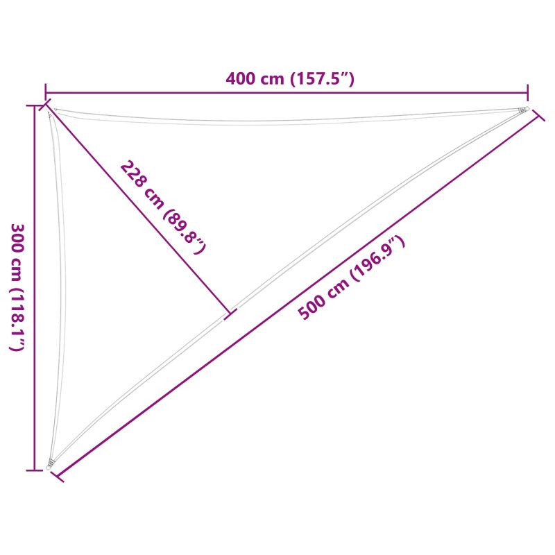 Сенникът за слънце е перфектното решение за горещите летни дни. Тази триъгълна конструкция комбинира стил и практичност, добавяйки страхотен вид на всяка тераса или градина. С неговия минималистичен подход, ще създадете уютна и защитена зона за релакс на открито. Качествени материали: Направен от 100% полиестер, устойчив на влага и дъжд, за максимална издръжливост. Сигурни компоненти: Неръждаеми закопчалки на ъглите за лесно и безопасно закрепване. Иновативен дизайн: Триъгълната форма привнася стил и осигурява добро покритие на различни открити пространства. Множество приложения: Идеален за различни места като градини, балкони и тераси, за да създадете сенчести кътчета. Инструкции за грижа: Лесен за поддръжка, с възможност за почистване с мека четка и студена вода.