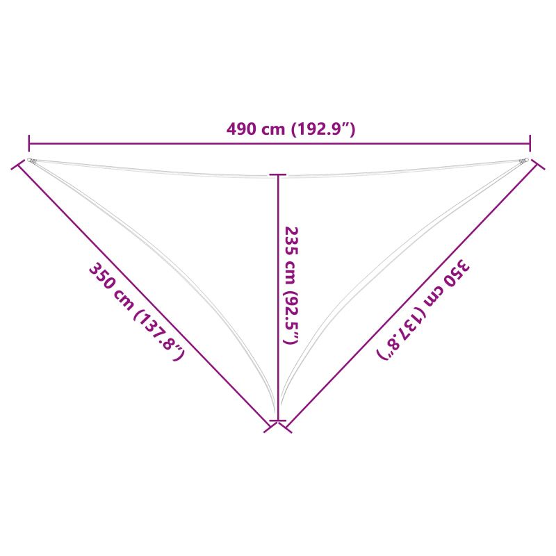 Сенникът за слънце е перфектното решение за горещите летни дни. Тази триъгълна конструкция комбинира стил и практичност, добавяйки страхотен вид на всяка тераса или градина. С неговия минималистичен подход, ще създадете уютна и защитена зона за релакс на открито. Качествени материали: Направен от 100% полиестер, устойчив на влага и дъжд, за максимална издръжливост. Сигурни компоненти: Неръждаеми закопчалки на ъглите за лесно и безопасно закрепване. Иновативен дизайн: Триъгълната форма привнася стил и осигурява добро покритие на различни открити пространства. Множество приложения: Идеален за различни места като градини, балкони и тераси, за да създадете сенчести кътчета. Инструкции за грижа: Лесен за поддръжка, с възможност за почистване с мека четка и студена вода.