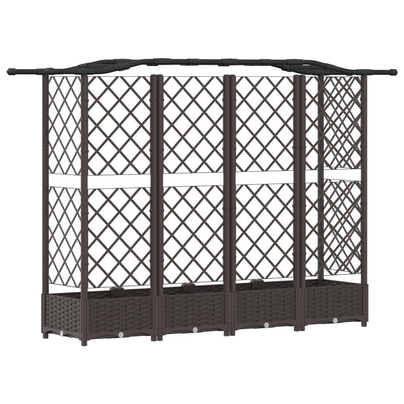 Издигнете пространството си с многофункционално високо градинско легло с интегрирана решетка и покрив - перфектно е за поддържане на катерещи растения и създаване на вертикални градински оформления. Изработено от издръжлив полипропилен, устойчив на UV лъчи, издържа на условията на открито сезон след сезон и е идеално за тераси, балкони и градински площи. Издръжлива конструкция от полипропилен: Проектирано да устоява на слънце, дъжд и температурни промени, това високо градинско легло е устойчиво на UV разграждане и запазва външния си вид през сезона. Интегрирана решетка и покрив: Стабилна решетка за катерещи растения и подсилен горен рамка за висящи саксии. Отглеждайте лози вертикално, за да създадете красива градинска изложба без застрашаване на пространството. Интелигентна дренажна система: Оборудвано с дренажен отвор и подвижна тапа, това сако има вътрешна преграда за вода, осигуряваща постоянна влага, без да се налага допълнителен лайнер. Лесно сглобяване: Удобен дизайн с ясни инструкции и добре подредени компоненти прави сглобяването лесно и стабилно. Лесно почистване и поддръжка: Изработено от лесно почистваем полипропилен, просто избършете с кърпа. За правилен дренаж периодично сменяйте тапа, за да осигурите добър воден отток.