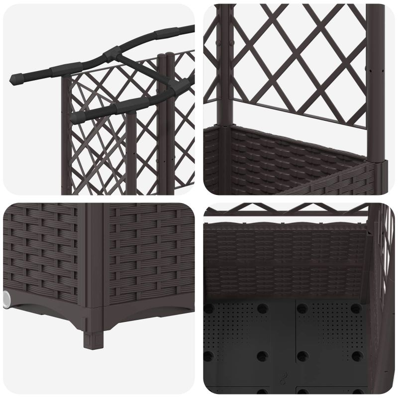 Издигнете пространството си с многофункционално високо градинско легло с интегрирана решетка и покрив - перфектно е за поддържане на катерещи растения и създаване на вертикални градински оформления. Изработено от издръжлив полипропилен, устойчив на UV лъчи, издържа на условията на открито сезон след сезон и е идеално за тераси, балкони и градински площи. Издръжлива конструкция от полипропилен: Проектирано да устоява на слънце, дъжд и температурни промени, това високо градинско легло е устойчиво на UV разграждане и запазва външния си вид през сезона. Интегрирана решетка и покрив: Стабилна решетка за катерещи растения и подсилен горен рамка за висящи саксии. Отглеждайте лози вертикално, за да създадете красива градинска изложба без застрашаване на пространството. Интелигентна дренажна система: Оборудвано с дренажен отвор и подвижна тапа, това сако има вътрешна преграда за вода, осигуряваща постоянна влага, без да се налага допълнителен лайнер. Лесно сглобяване: Удобен дизайн с ясни инструкции и добре подредени компоненти прави сглобяването лесно и стабилно. Лесно почистване и поддръжка: Изработено от лесно почистваем полипропилен, просто избършете с кърпа. За правилен дренаж периодично сменяйте тапа, за да осигурите добър воден отток.