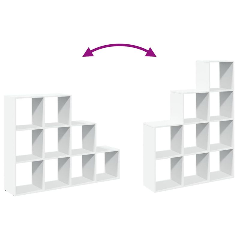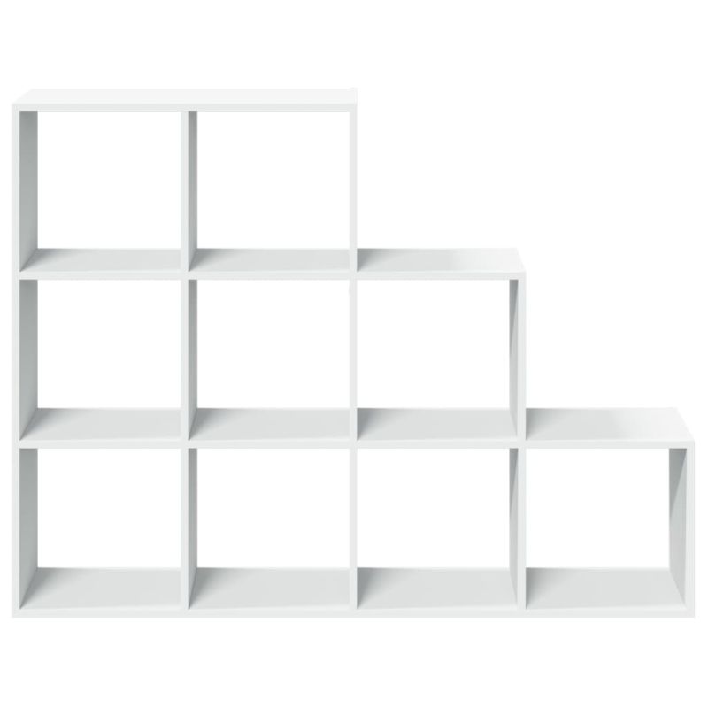 Рафтът за книги с разделител за стая на 3 нива разполага с девет кубични отделения, идеални за организиране на пространството със стил!Стабилен и издръжлив материал: Инженерната дървесина е издръжлив и стабилен материал с гладка повърхност, която е устойчива на влага, изкривяване и разцепване, което я прави надежден избор за разнообразни проекти.Достатъчно място за съхранение: Рафтът за книги разполага с девет кубични отделения, идеални за подреждане на книги, декорации и други домакински предмети.Гъвкави възможности за поставяне: Етажерката може да бъде разположена по ширина или по височина на земята, което предлага разнообразни възможности за оформление на помещението.Универсални приложения: Стелажът може да се използва и като преграда за стая, като лесно се вписва във всеки стил стая. Можете да го поставите във всекидневната, за да изложите декорация, в кабинета, за да съхранявате книги и документи, в спалнята, за да съхранявате предмети от ежедневието, и в мазето, за да съхранявате предмети от бита.Лесна поддръжка: Благодарение на гладката си повърхност, библиотеката разделител за стая се почиства лесно с влажна кърпа и изисква по-малко поддръжка.Внимание:За да предотвратите преобръщане, този продукт трябва да се използва с предоставеното устройство за закрепване на стена.Добре е да се знае:Винтовете и дюбелите за вътрешната стена не са включени. Съветваме ви да намерите и използвате винтове и дюбели, подходящи специално за вашите стени. Ако не сте сигурни, можете да се консултирате с професионалист. Моля, прочетете и следвайте всяка стъпка от инструкциите.