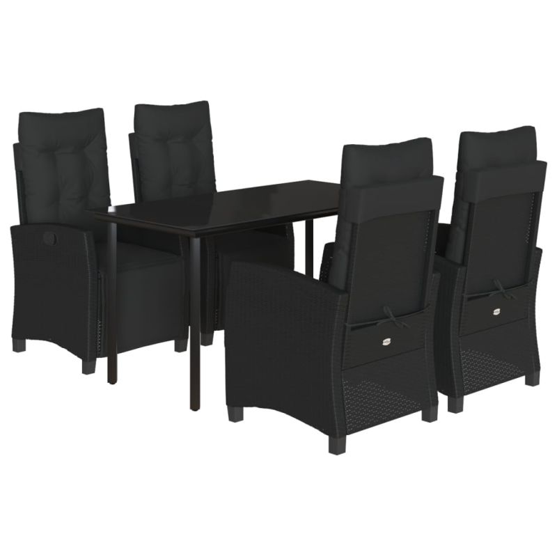 Градински трапезен комплект възглавници 5 части черен полиратан