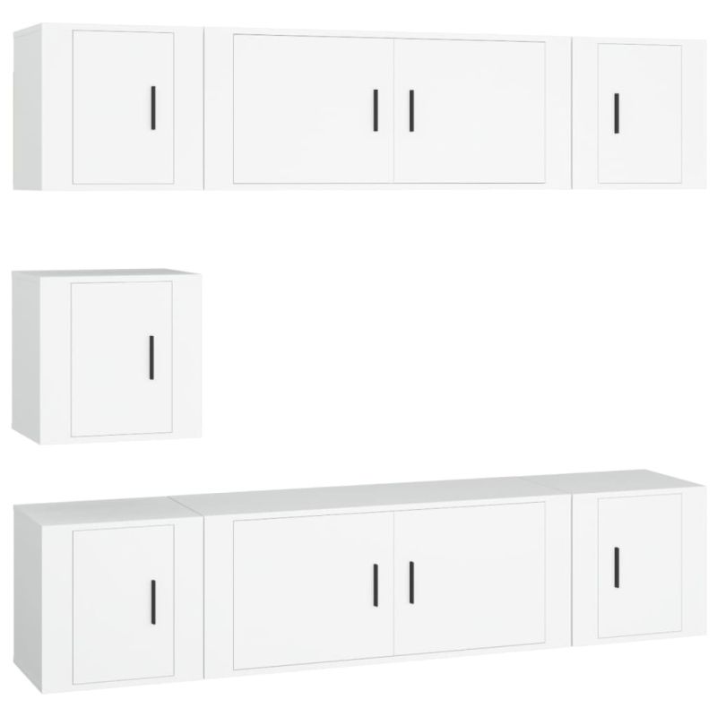 Комплект ТВ шкафове от 7 части, бял, инженерно дърво