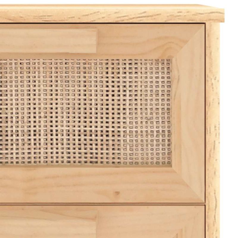 Сайдборд, кафяв, 40x30x90 см, бор масив и естествен ратан