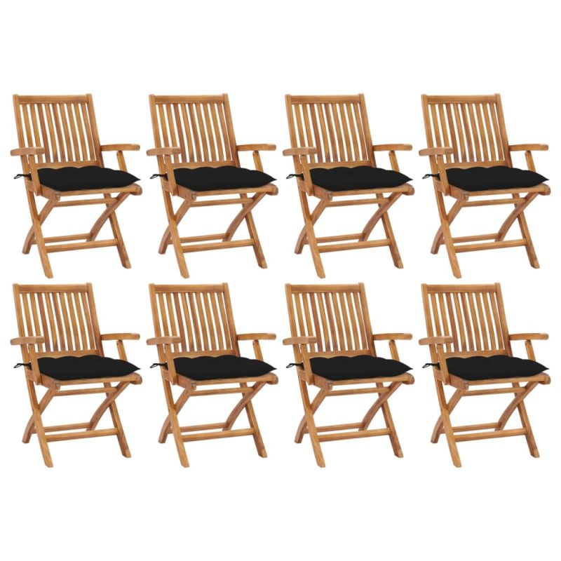 Сгъваеми градински столове с възглавници 8 бр тик масив