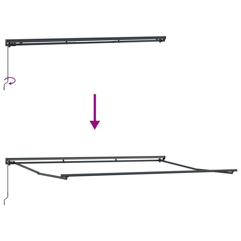 Този прибираем сенник е чудесен за градини и тераси. Може лесно да се разширява или прибира, за да регулира слънчевата светлина и защитата, когато е нужно. Идеален е за хапване на открито, релаксация или просто за посрещане на гости, създава комфортна среда, като предлага защита от слънце и леки дъждове. Сенникът е супер полезно допълнение, за да се наслаждаваш на откритите пространства през цялата година. Устойчиви материали: Изработен е от полиестер с PU покритие, който издържа на всякакво време. Рамката, прахово боядисана от стомана и алуминий, осигурява стабилност за ежедневно ползване навън. Регулируема работа: Сенникът може да се контролира с ръчна ръкохватка или дистанционно, позволявайки лесно разширение или прибиране в зависимост от нуждата от сянка. Структура полу-касета: С прибиращи се рамене и алуминиев вал, който предлага гладко разширение и прибиране, и защитава плата, когато не се използва. Открита сянка: Подходящ е за дворове, градини и тераси, прибираемата функция позволява регулиране на зоната сянка според условията на слънчевата светлина. Изисквания за монтаж: Сенникът е проектиран за монтаж на стена. Нужни са основни инструменти като отвертка, бормашина и клещи. Следвай инструкциите за правилно сглобяване и монтаж. Опасност! Силен отскок при отваряне. НЕ сваляйте това въже, освен ако не сте приключили с всички стъпки на сглобяване. Всички болтове трябва да са затегнати и елементът да е прикрепен към стената! Предупреждение! Внимавайте, когато разхлабвате рамената, защото те са под напрежение! Внезапното освобождаване на рамо на сгъваема тента може да причини нараняване. Внимание: Инструкциите за ползване трябва да бъдат прочетени преди употребата на продукта. Предупреждение: Работата в студени условия може да повреди продукта. Външна употреба в сгради и други строителни обекти.