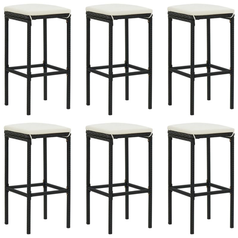Градински бар комплект с възглавници 7 части черен полиратан