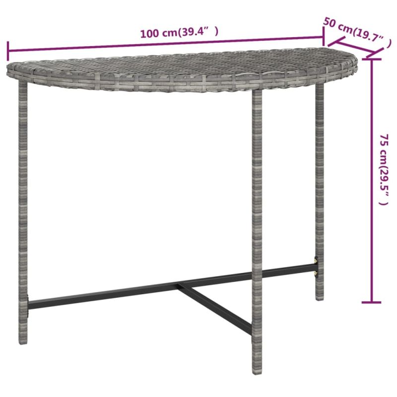 Градинска маса, сива, 100x50x75 см, полиратан
