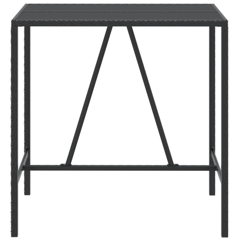 Бар маса със стъклен плот, черна, 110x70x110 см, полиратан
