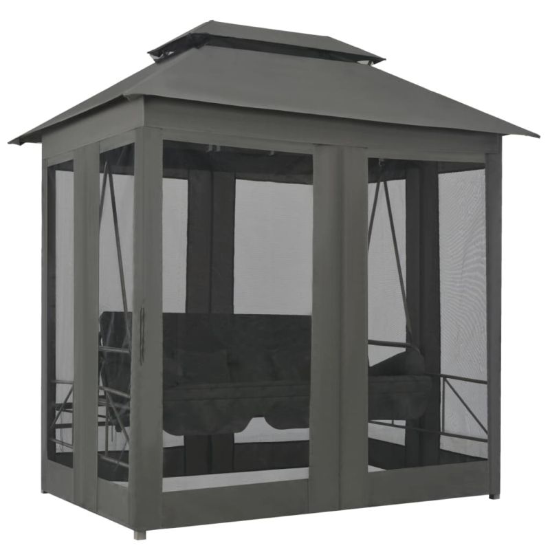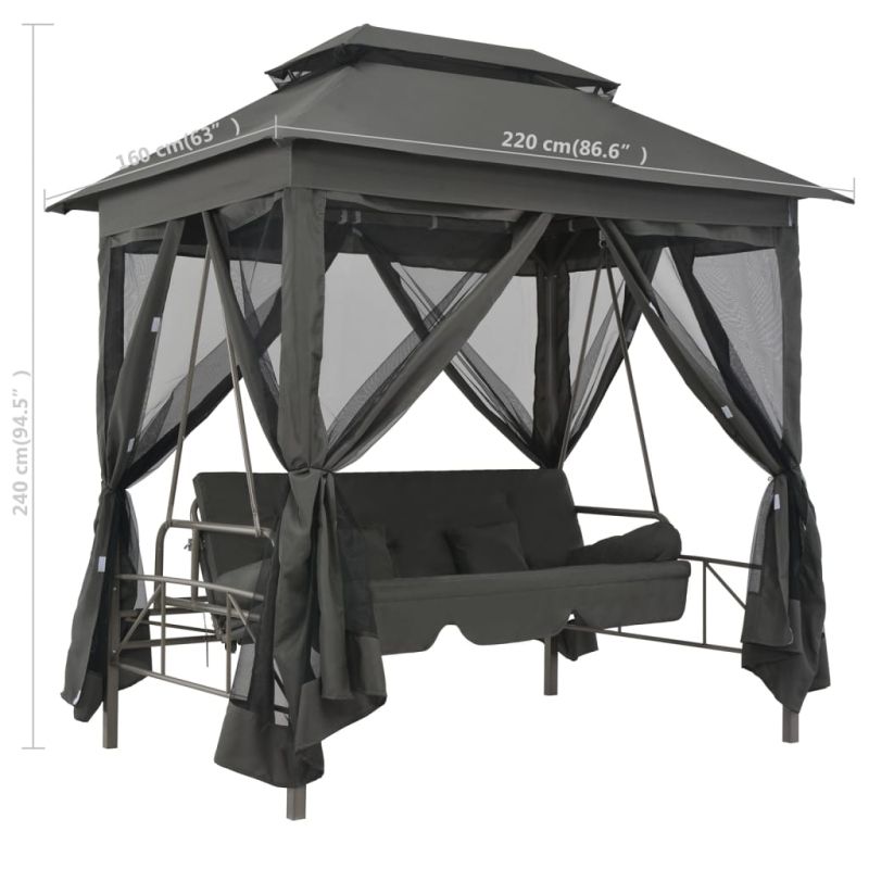 Градинска люлка със сенник, антрацит, 220x160x240 см, стомана