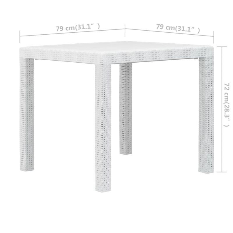 Бистро комплект, 3 части, пластмаса, бял, ратанов вид