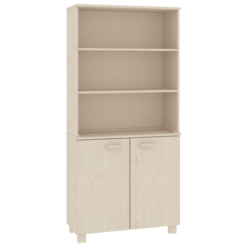 Висок шкаф HAMAR, борово дърво масив, меденокафяв