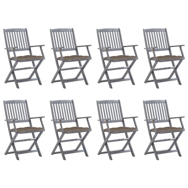 Сгъваеми градински столове, 8 бр, с възглавници, акация масив