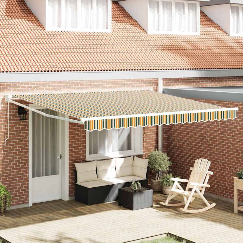 Този прибиран сенник е чудесно допълнение за всяка градина или тераса. Проектиран е да предлага сянка в слънчевите дни и впечатлява с модерен и елегантен стил. Стилната зелена и бяла цветова схема пасва на много градински ландшафти, правейки обстановката по-приветлива. Идеален за социални събирания, този сенник предлага комфортно място за отдих, хранене или забавления. Гъвкавият му механизъм позволява както частично, така и пълно разширение, което осигурява сянка при всякакви метеорологични условия. Устойчиви материали: Изграден от полиестер и метал, този сенник съчетава здравина и лекота за лесно поставяне и регулиране. Полиестерът е устойчив на времето и запазва яркостта на цвета. Здравата метална рамка предоставя надеждна опора, дори при ветровито време. UV-устойчиви тъкани: Специално проектиран с UV-устойчиви материали, сенникът блокира вредните слънчеви лъчи, осигурявайки безопасен открит пространство за отдих. Тази характеристика удължава използваемостта на плата, запазвайки ефективността и красивия му вид през сезона. Дали се събирате на ден или търсите убежище от горещото слънце, този сенник предлага отлична защита. Функционални компоненти: Прибираемият механизъм позволява на потребителите да адаптират сенника според нуждите им, осигурявайки нужната сянка. Работи с ръчен механизъм, който изисква минимални усилия, така че да е лесен за ползване през летните дни или спокойни следобеди. Неговата многофункционалност го прави подходящ за всякакви дейности на открито, от закуски до вечерни събирания. Модерен дизайн: Придържайки се към модерен стил, този сенник предлага минималистичен вид с чисти линии, което го прави идеален акцент в съвременни градини. Неговият стилен дизайн му позволява да се комбинира отлично с различни стилове на градинско обзавеждане, осигурявайки гъвкавост за потребителите при избора на декор. Изисквания за сглобяване: За монтажа са нужни двама души и отвертка за сигурно инсталиране. Простата конструкция позволява бърз монтаж и придава нотка на стил и удобство на откритите пространства.