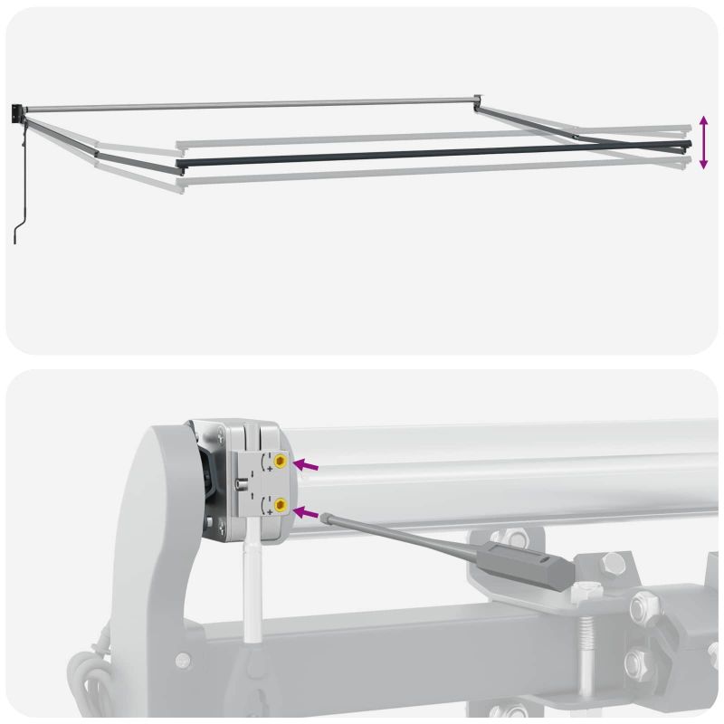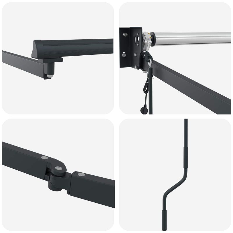 Този автоматичен прибираем сенник дава и практическа, и стилна стойност на всяко открито пространство. С чистите си линии и функционален дизайн, той е модерен и идеално подобрява патии или балкони, осигурявайки ефективна защита от слънцето. Гладката му текстура и минималистичен дизайн създават приятно място за отдих за семейства и приятели. Материали: Изработен от полиестер и метал, този сенник съчетава устойчива тъкан с надеждна алуминиева рамка, осигурявайки стабилност независимо от времето. Тази комбинация не само добавя стил, но и предлага ефективна защита от UV лъчи, запазвайки качествата си във времето. Включени компоненти: С LED лентите, този сенник не просто осигурява сянка, но и осветление. Интегрираните LED ленти предлагат много опции за осветление, подобрявайки вечерните събирания и настроението на патията. Функции /Функция /Дизайн: Прибираемият механизъм позволява на потребителите да регулират сянката с лекота. Тази комбинация от функционалност и здравина е пример за съвременен живот на открито, който се вписва идеално в различни стилове. Препоръчителни употреби: Този сенник е универсален и идеален за градини, дворове или търговски тераси, предлагащ чудесно решение за личен отдих или обществени събития. Неговата гъвкавост го прави подходящ за всякакви пространства. Грижа и поддръжка: За да запазите привлекателността на сенника, редовно почиствайте полиестерната тъкан с нежна кърпа и избягвайте агресивни химикали. Проверките на механизма ще осигурят безпроблемно функциониране, за да остане красив и полезен. Опасност! Силен отскок при отваряне. НЕ сваляйте това въже, освен ако не сте приключили с всички стъпки на сглобяване. Всички болтове трябва да са затегнати и елементът да е прикрепен към стената! Предупреждение! Внимавайте, когато разхлабвате рамената, защото те са под напрежение! Внезапното освобождаване на рамо на сгъваема тента може да причини нараняване. Внимание: Инструкциите за ползване трябва да бъдат прочетени преди употребата на продукта. Предупреждение: Работата в студени условия може да повреди продукта. Външна употреба в сгради и други строителни обекти. Не позволявайте на деца да си играят с управляващото устройство на щората. Дръжте дистанционното управление далеч от деца.